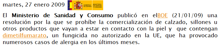 De igual manera los productos que vendemos son libres de Dimetilfumarato, sustancia que ha causado problemas muy severos en el ser humano (imágenes que muestren lo que ha causado)